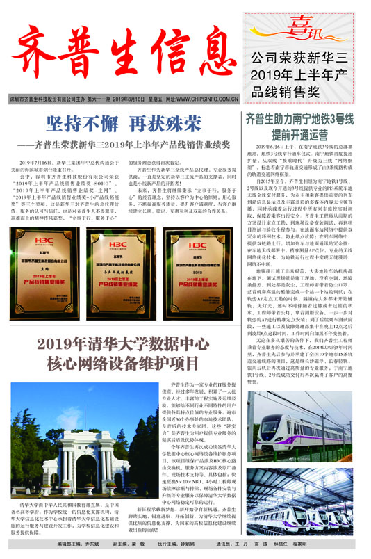 坚持不懈 再获殊荣 ------齐普生荣获新华三2019年上半年产品线销售业绩奖