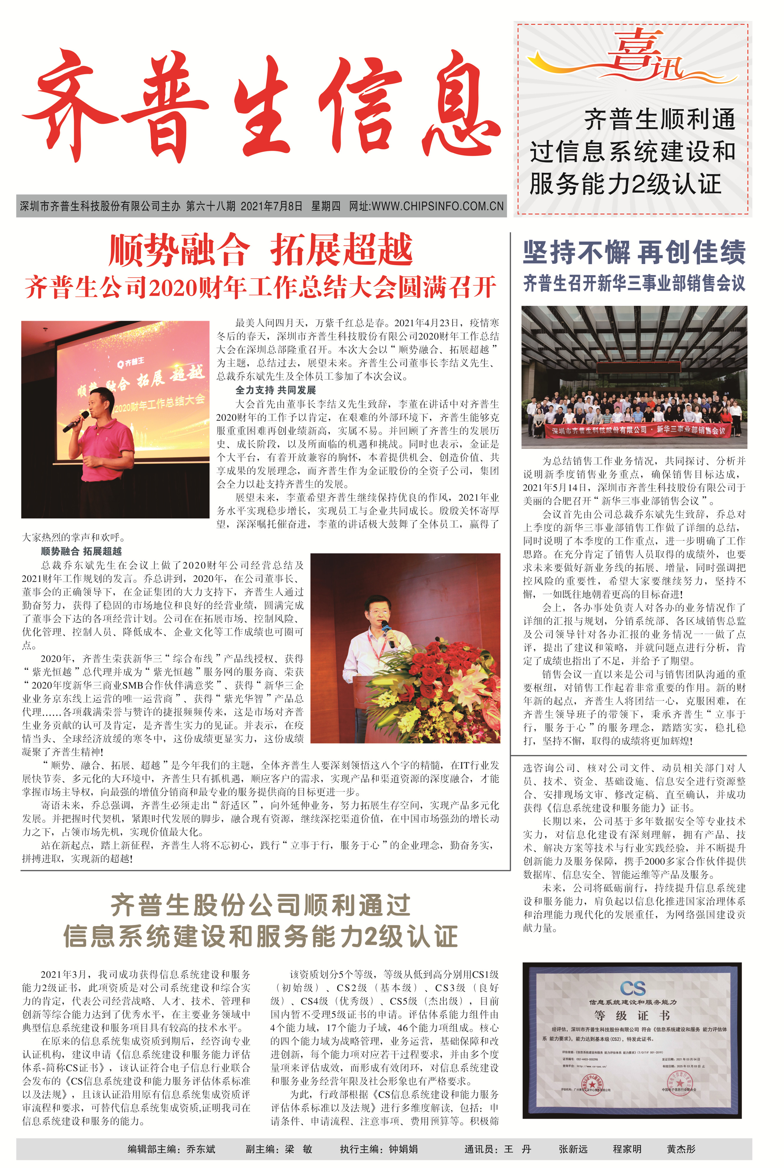 • 齐普生股份公司顺利通过信息系统建设和服务能力2级认证 2021-08-02