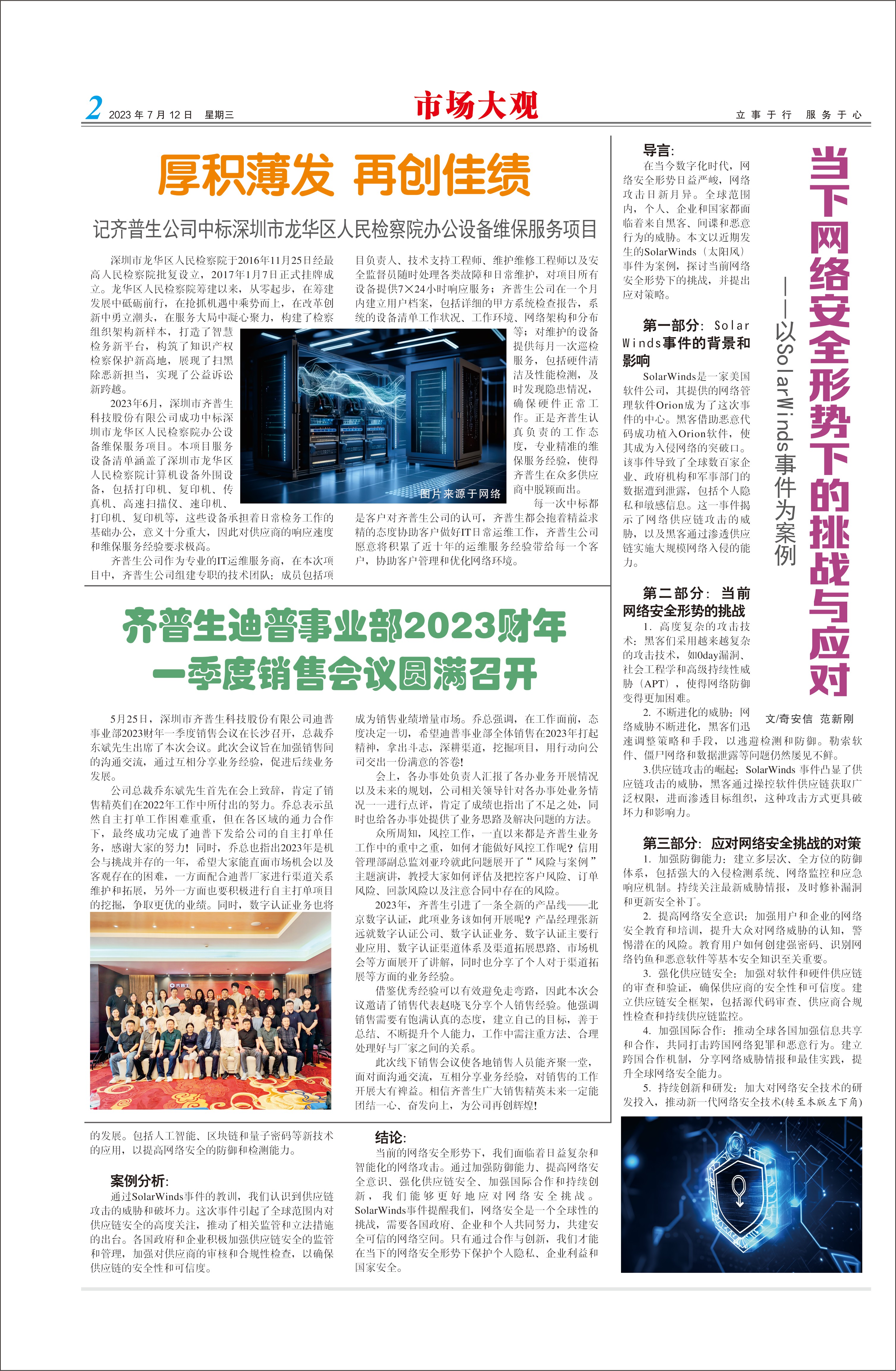 厚积薄发 再创佳绩 记齐普生公司中标深圳市龙华区人民检察院办公设备维保服务项目