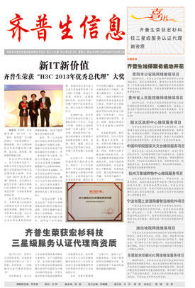 新IT 新价值 齐普生荣获“H3C 2014年优秀总代理”大奖